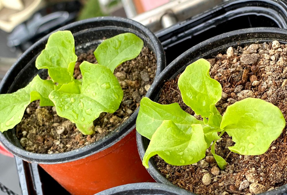 같은 날 심은 상추 중 몇 개를화분 걸이대에 두고 키워보았어요.