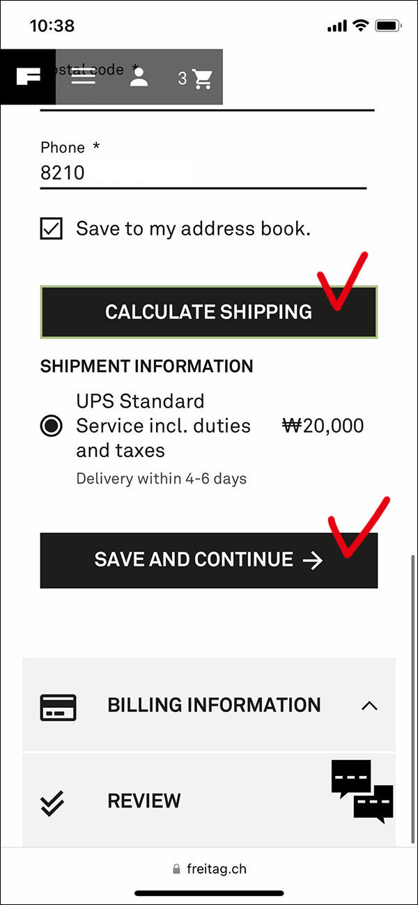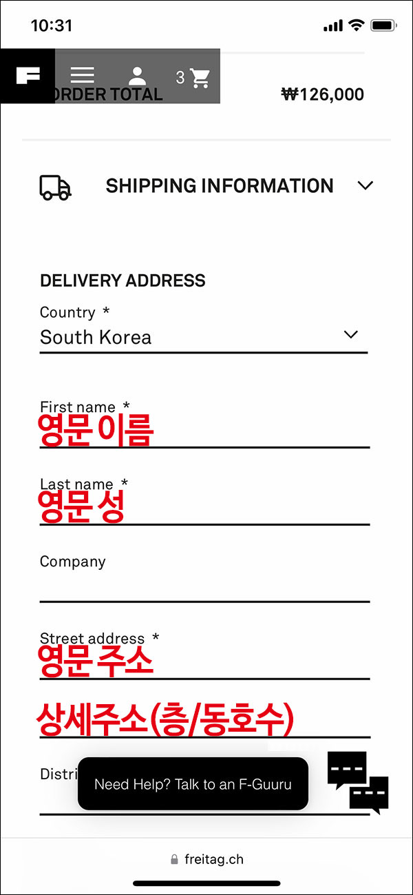 프라이탁 공홈에서 직구를 할 때, 배송 주소를 입력하는 방법에 대해 알려드립니다.