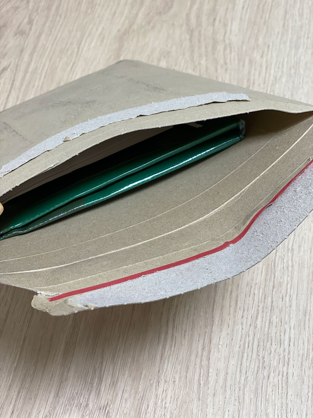 가방을 샀다면 박스에 담겨왔을텐데, 납작한 파우치와 노트커버라서 봉투에 담아 보냈네요.