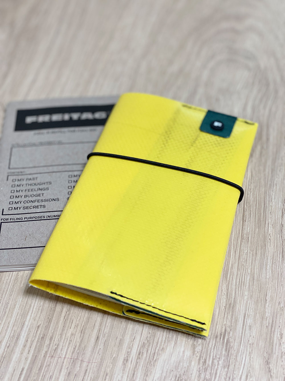 트래픽 옐로우 컬러의 프라이탁 노트커버 SID입니다.