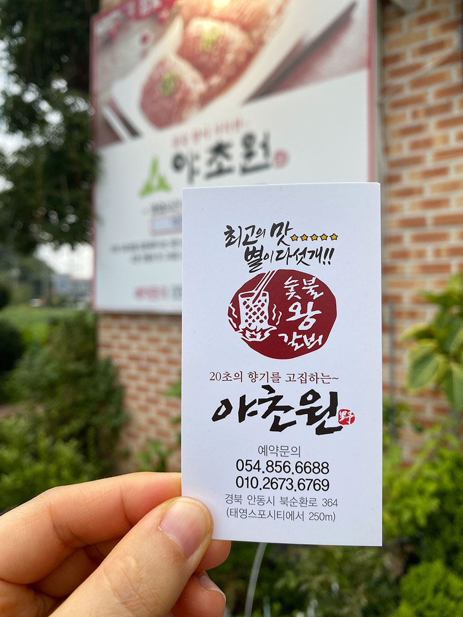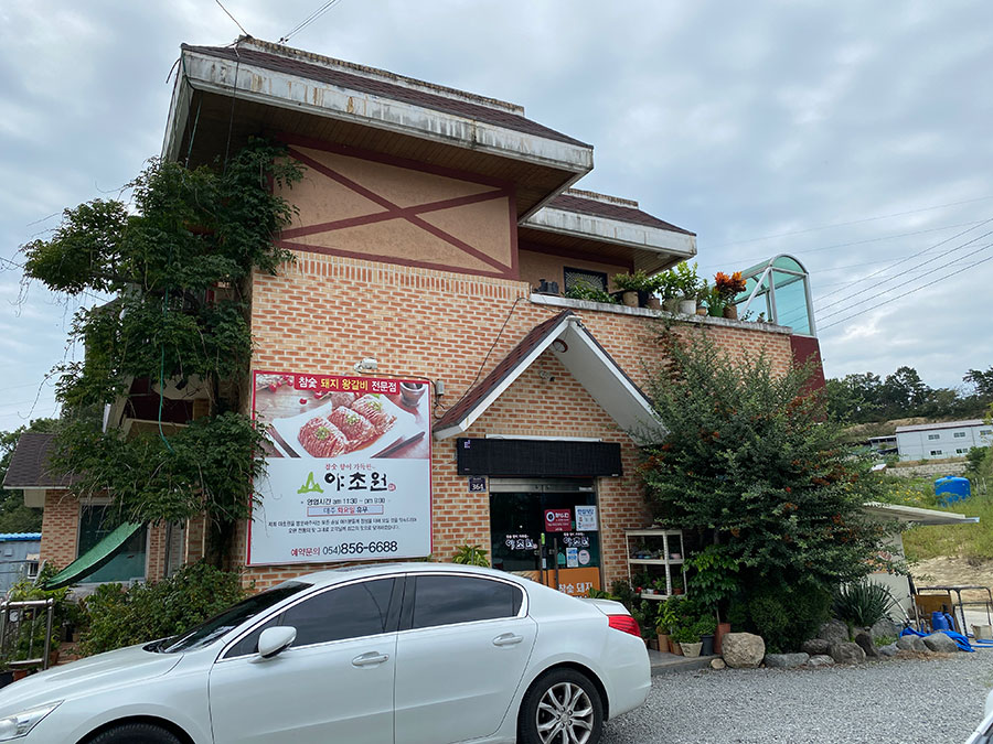 안동 시내에서 도산서원 가는 길, 북순환로사거리에서 제비원 방향으로 가다보면 야초원 입간판이 보입니다.