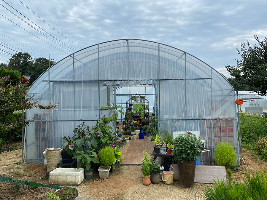 식당 옆에는 비닐하우스로 다육이 온실을 만들어 놓았어요.