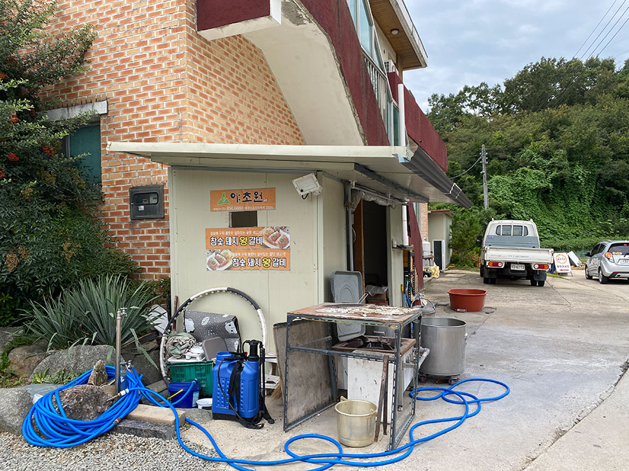 식당 옆에는 숯불 피우는 곳이 있습니다.