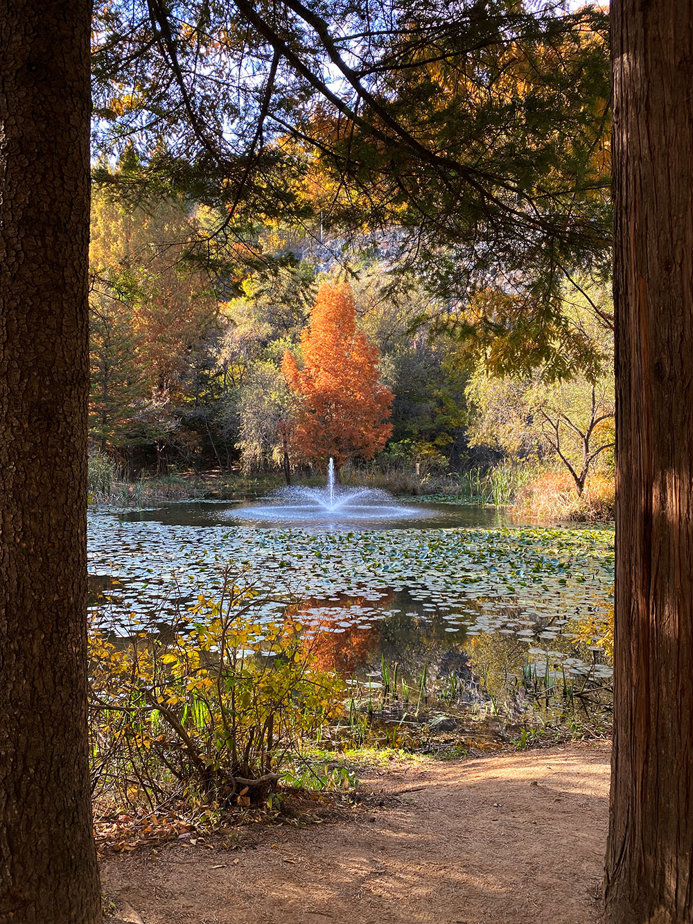 분수 너머의 징검다리가 바로 그 장소!