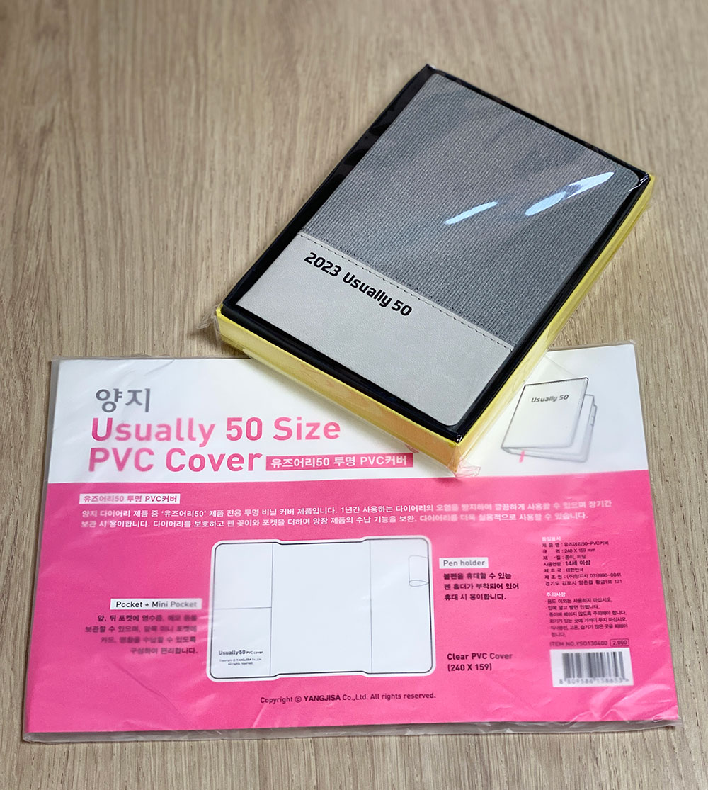 양지 유즈어리를 사용하면서 펜홀더가 없어 늘 아쉬웠었기에 유즈어리 50 전용 pvc 커버를 함께 구입했습니다.