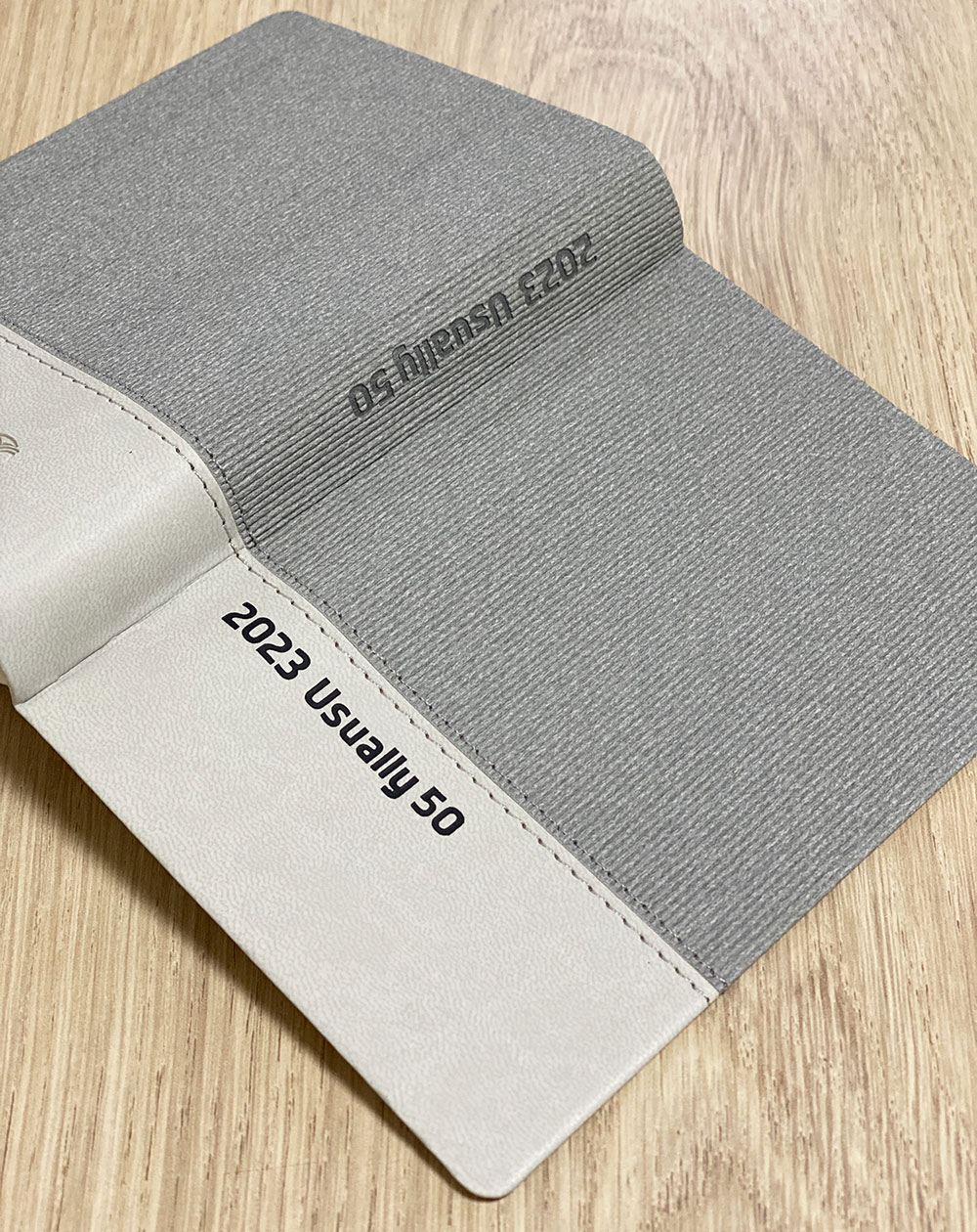 색상은 예전에 없던 그레이가 있어 그레이로 선택했고, 펜홀더가 있는 유즈어리 50 전용 pvc 커버도 함께 구입했어요.
