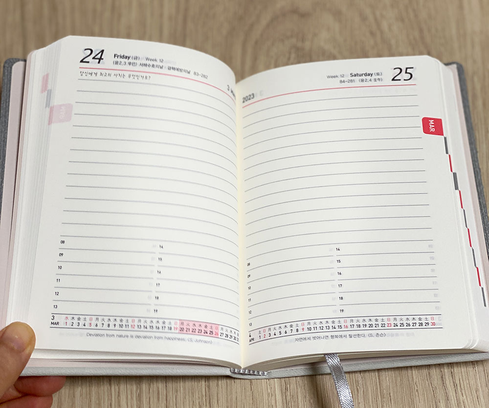 하루 스케줄과 간단히 일기를 적기 좋습니다.