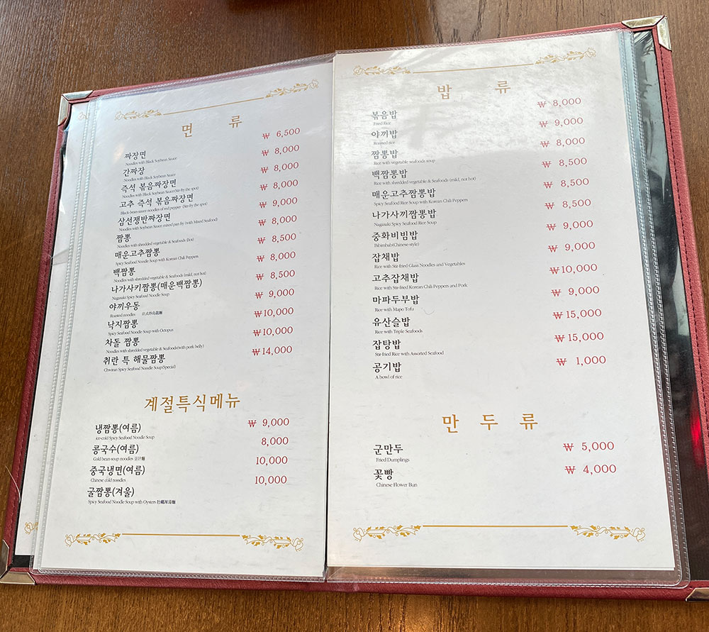 단품 요리는 물론 코스 요리도 있지만 간단히 점심을 먹으러 왔으니 짜장면, 볶음밥, 취란 특 짬뽕을 주문했어요.