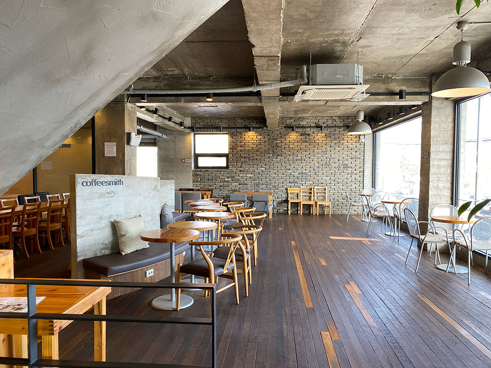 1층에도 창가쪽으로 자리가 여럿있지만 2층이 넓고 테이블도 많아요.