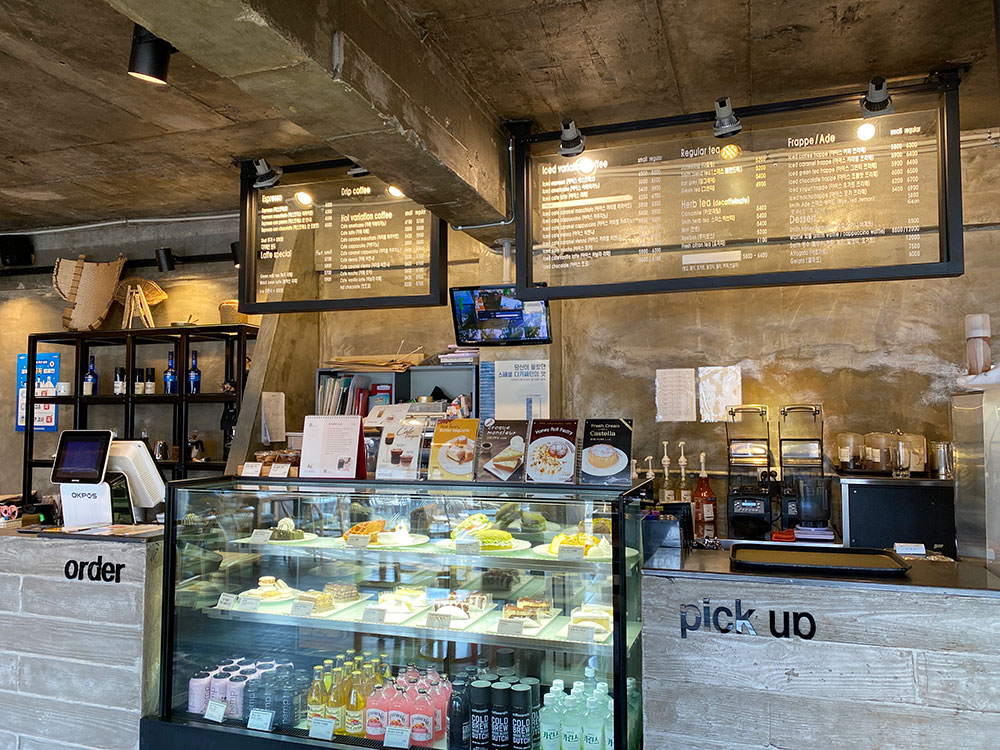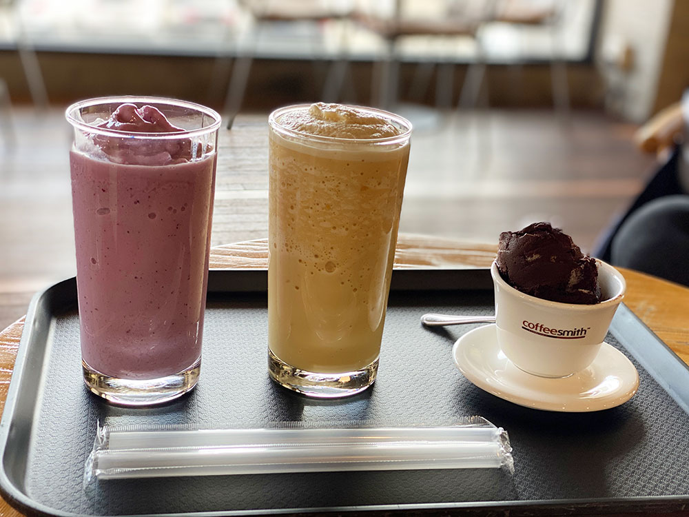 달고나 라떼와 블루베리 스무디, 초코 젤라또를 주문했습니다.
