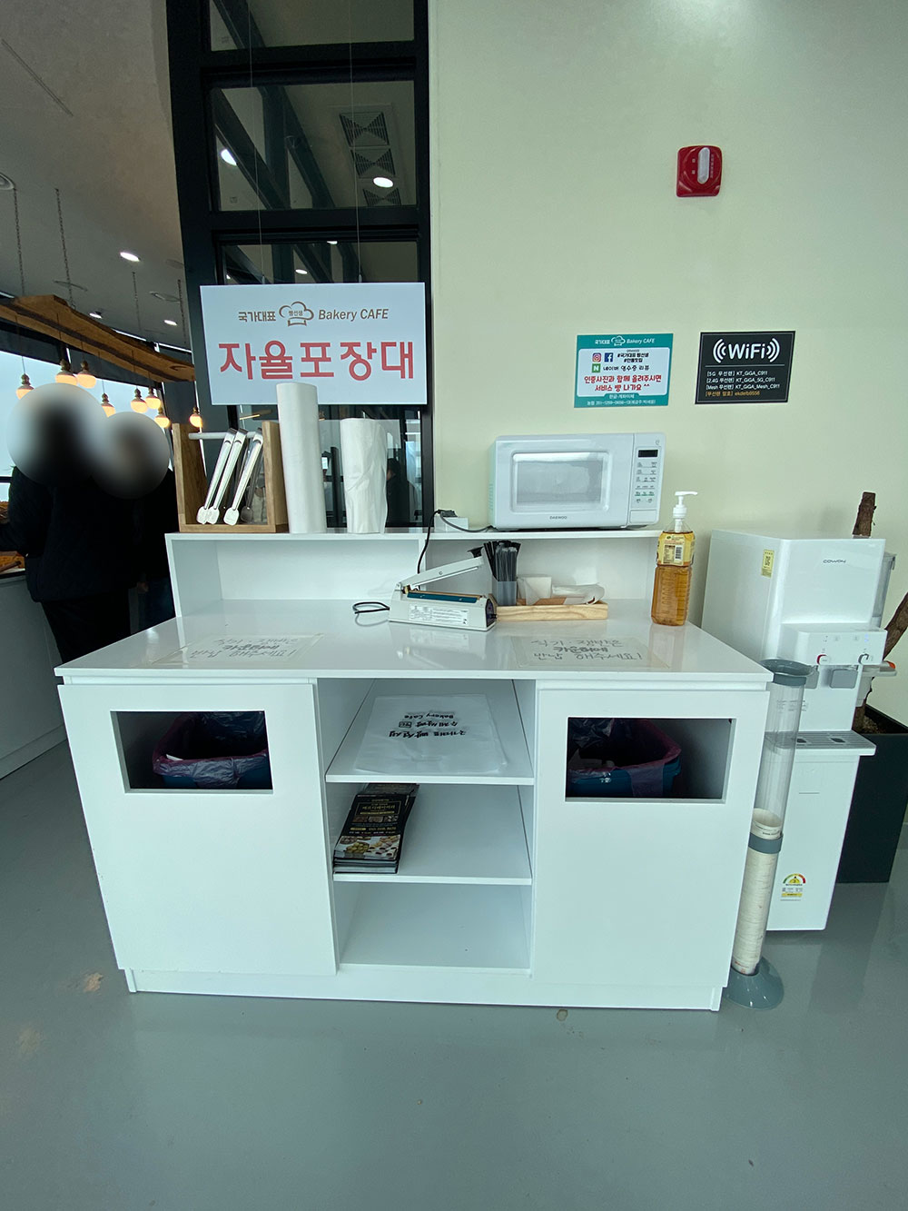 빵을 먹을 때 필요한 포크, 나이프는 계산대에 있으니 필요한 만큼 가져가 사용하면 됩니다.