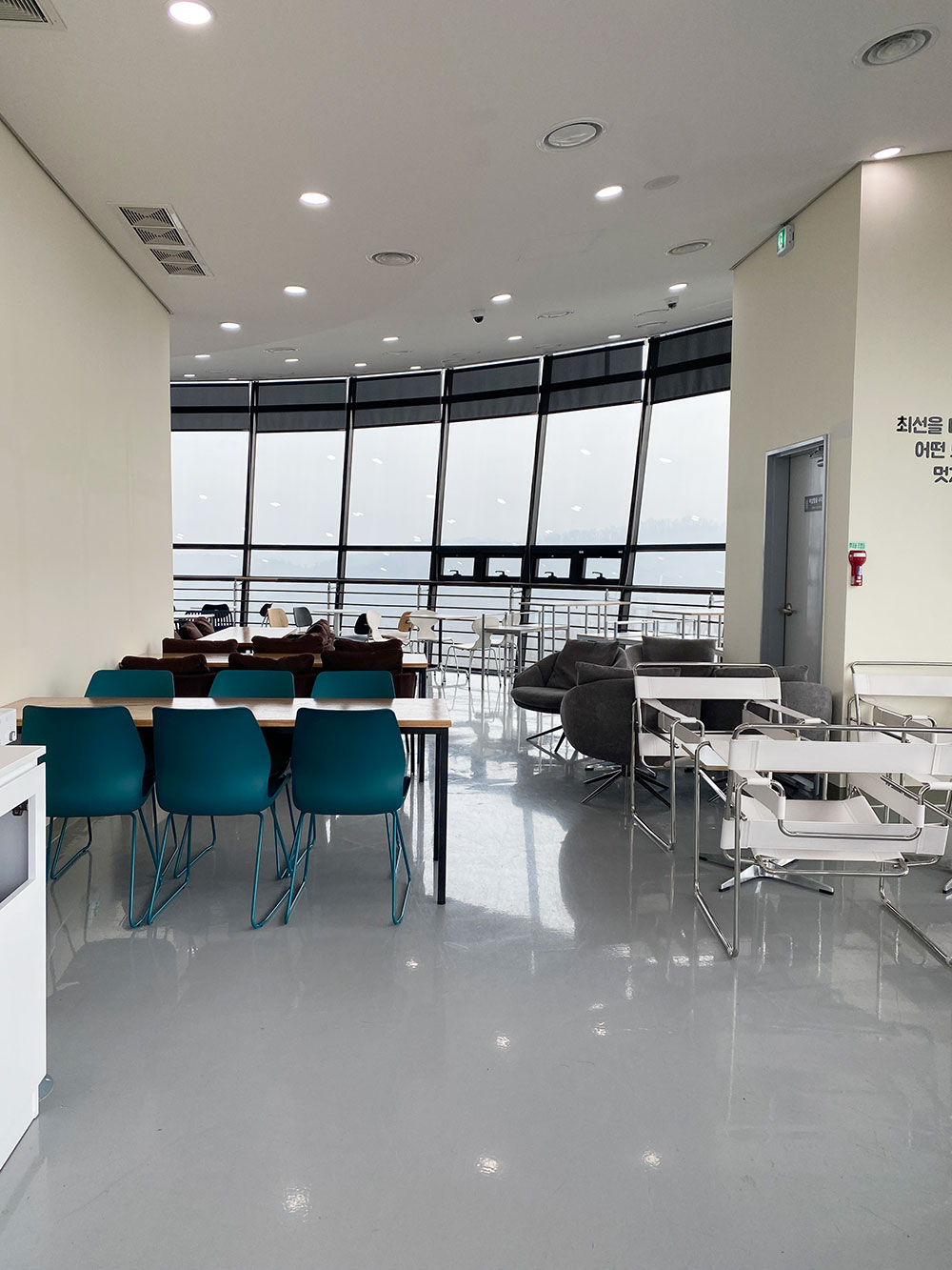 창가자리는 날씨 좋은 맑은 날 전망이 잘 보일테고, 안쪽 자리는 의자가 편안해 보이네요.