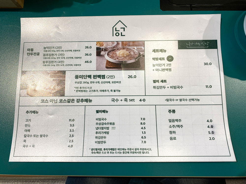 메뉴 이름 옆에 2인, 3인, 4인 이렇게 몇 명이 먹으면 적당한지 써있어서 메뉴를 선택하는데 어렵지 않았어요.