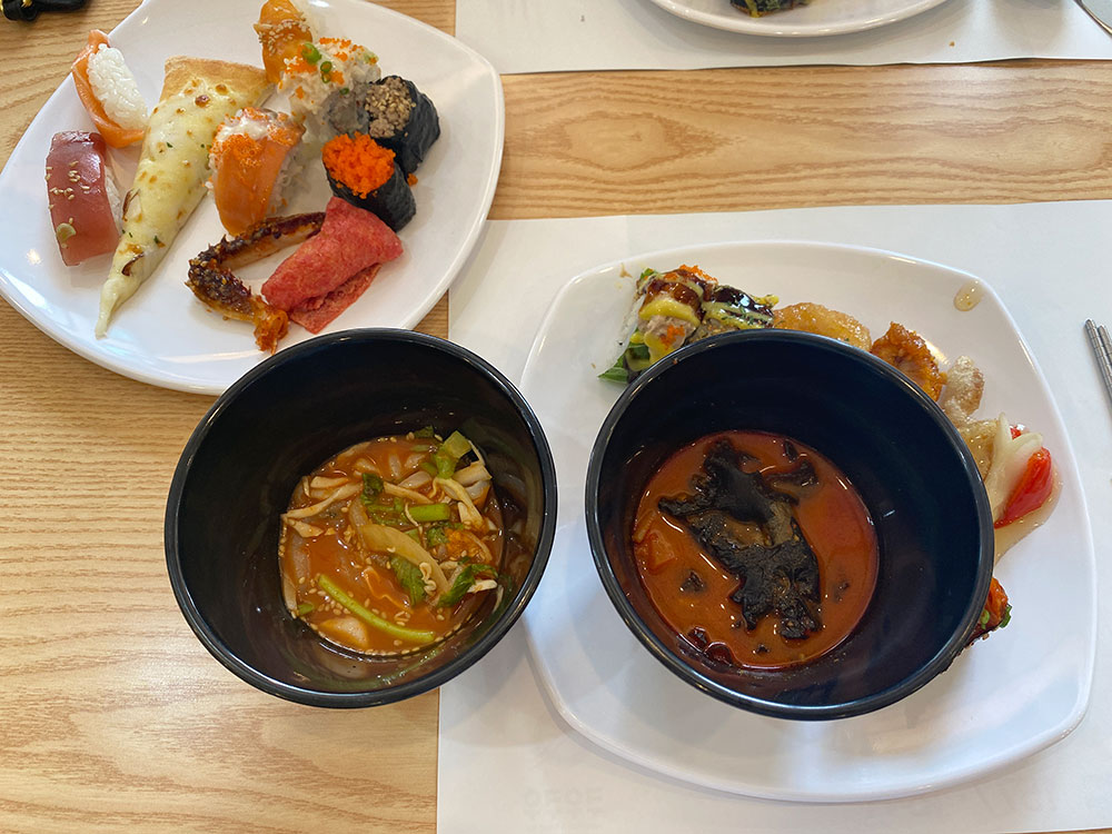 저는 뷔페에서 우동이나 국수, 짬뽕 등 국물이 있는 면 요리를 먹을 때 면은 빼고 국물만 주로 먹습니다.
