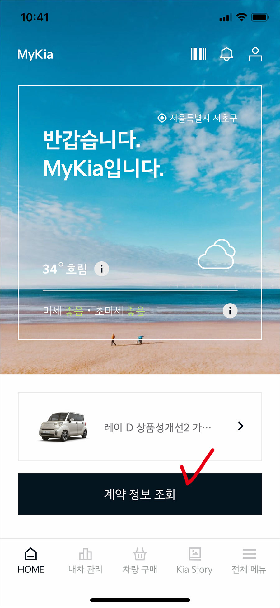 신차 출고조회 외에도 마이 기아 앱에서 차량 등록 후 정비 예약을 할 수 있으니 기아자동차를 계약하셨다면 미리 회원가입을 해 두시는 것도 좋습니다.