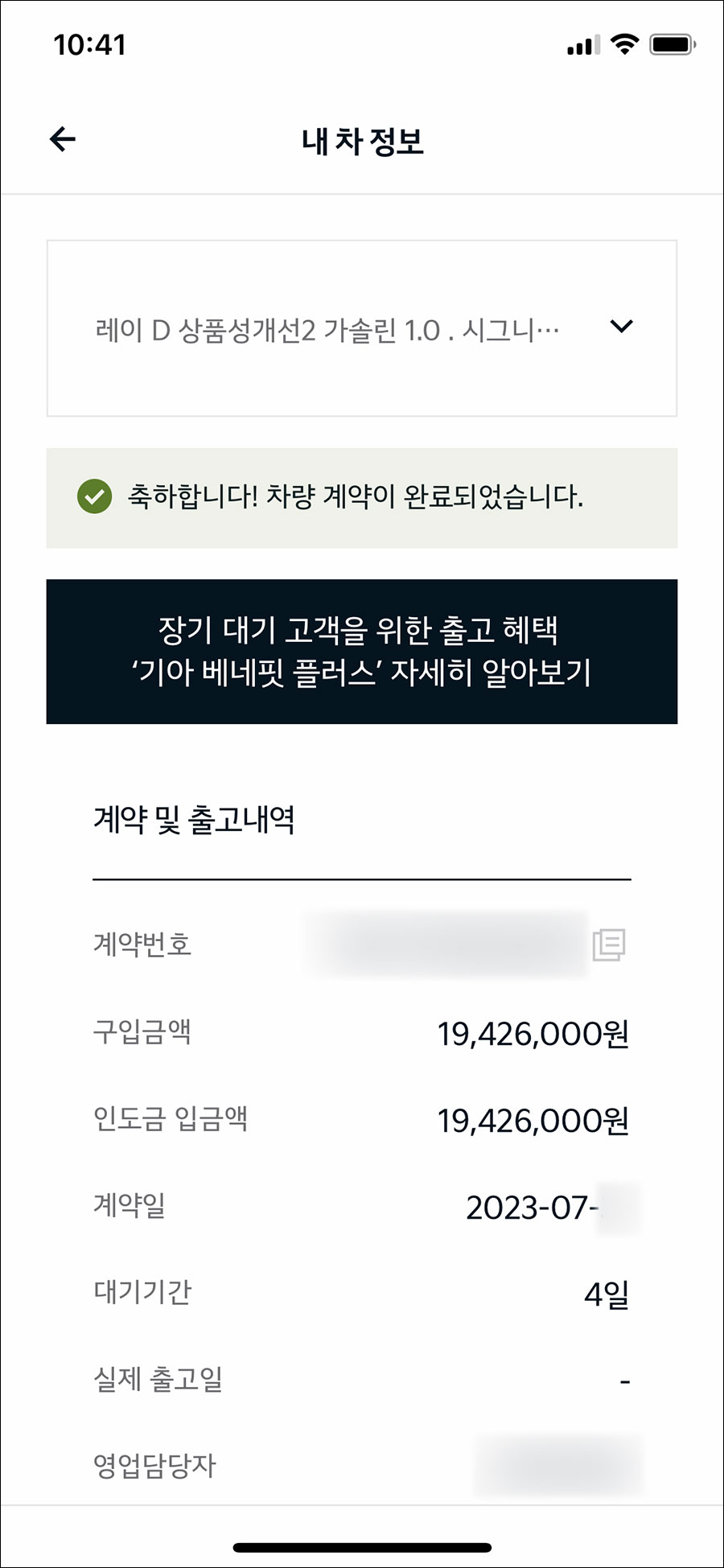계약을 한지 4일째 되는 날이고 출고일은 아직 보이지 않네요.
