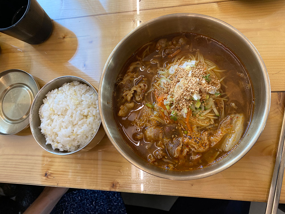 면과 건더기를 적당히 건져먹고 함께 나온 밥을 말아서 먹으면 됩니다.