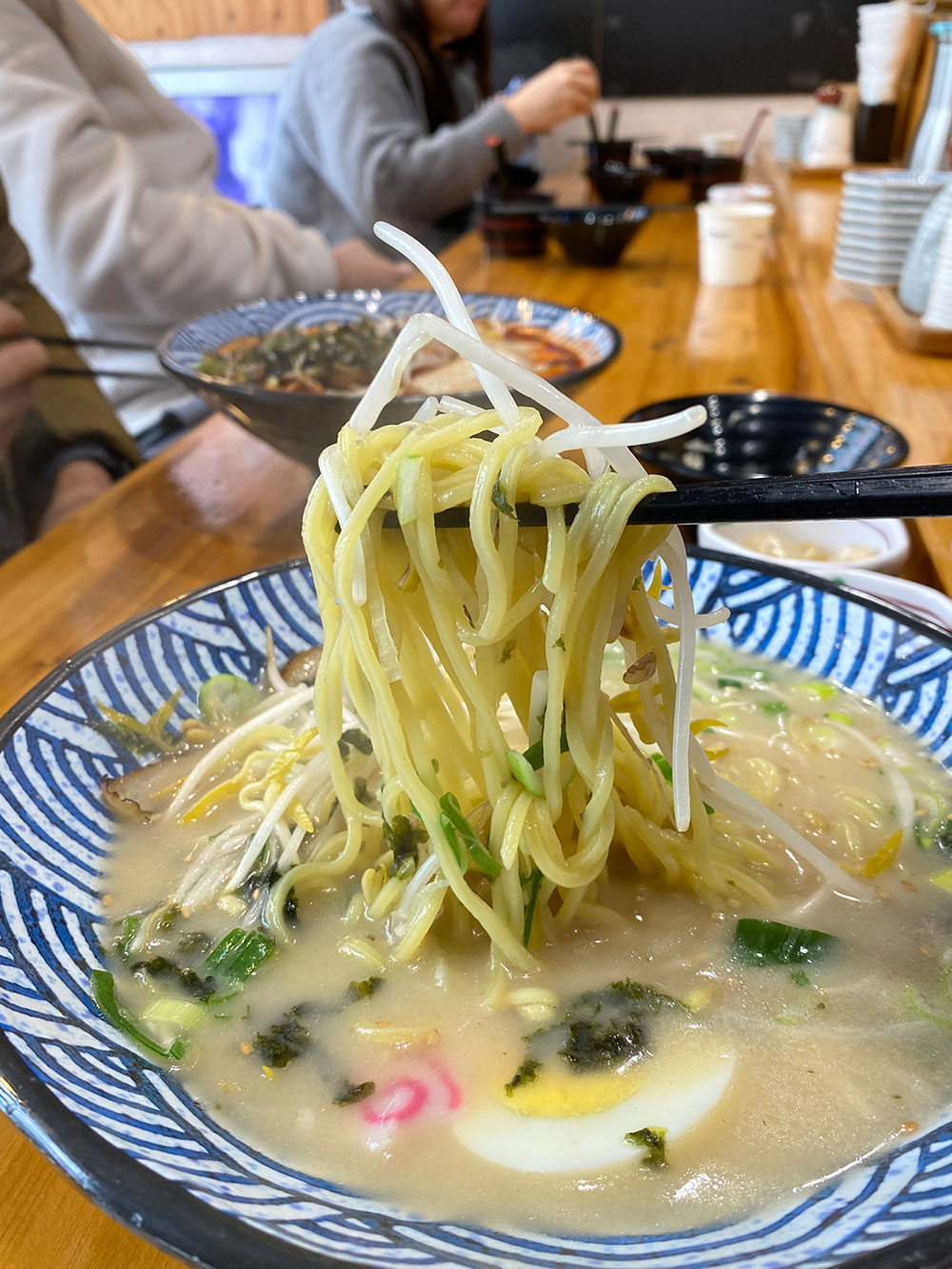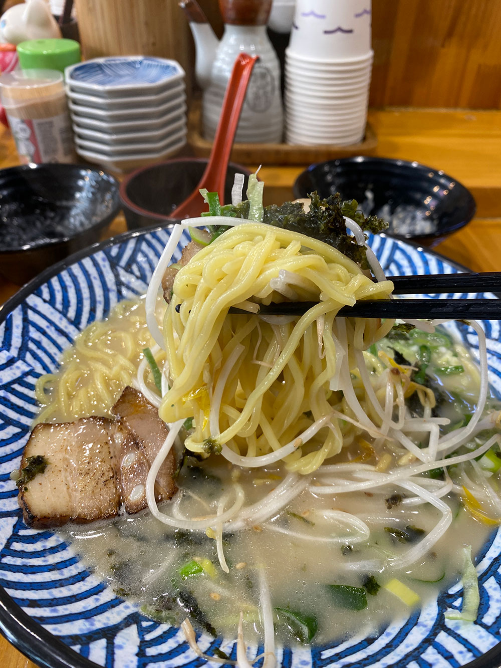 얼큰한 지고쿠와는 다르게 맑고 깊은 맛이 나는 돈코츠 라멘은 자극적이지 않아서 아이들도 무리없이 먹을 수 있습니다.