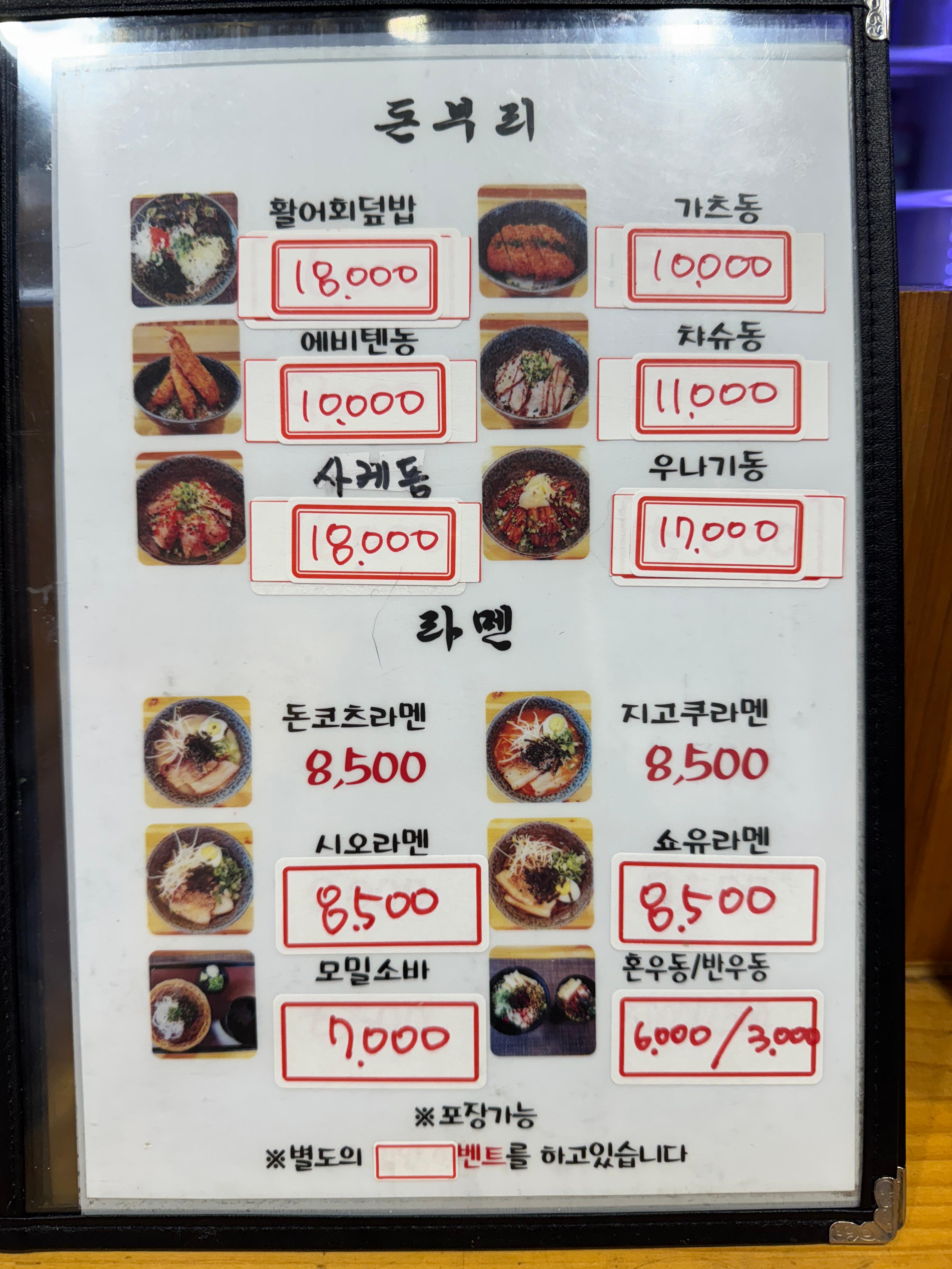 돈코츠 라멘과 지고쿠 라멘의 가격이 같기 때문에 변경 가능합니다.