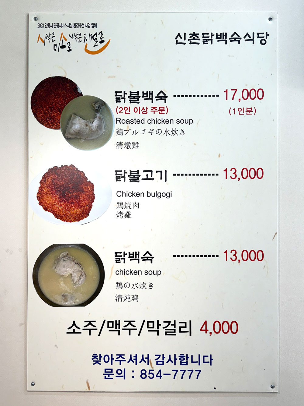 닭백숙 전문점이기 때문에 메뉴는 오직 3개뿐!