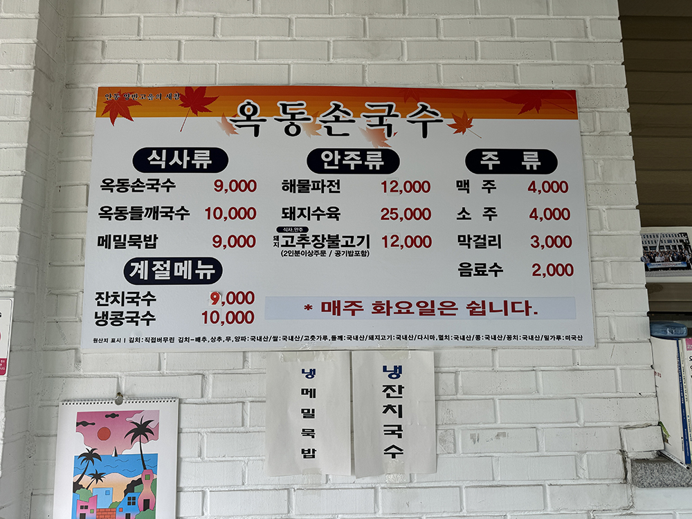 지난번 갔었던 현지인 맛집, 당북동에 위치한 옥동손국수를 재방문했습니다.