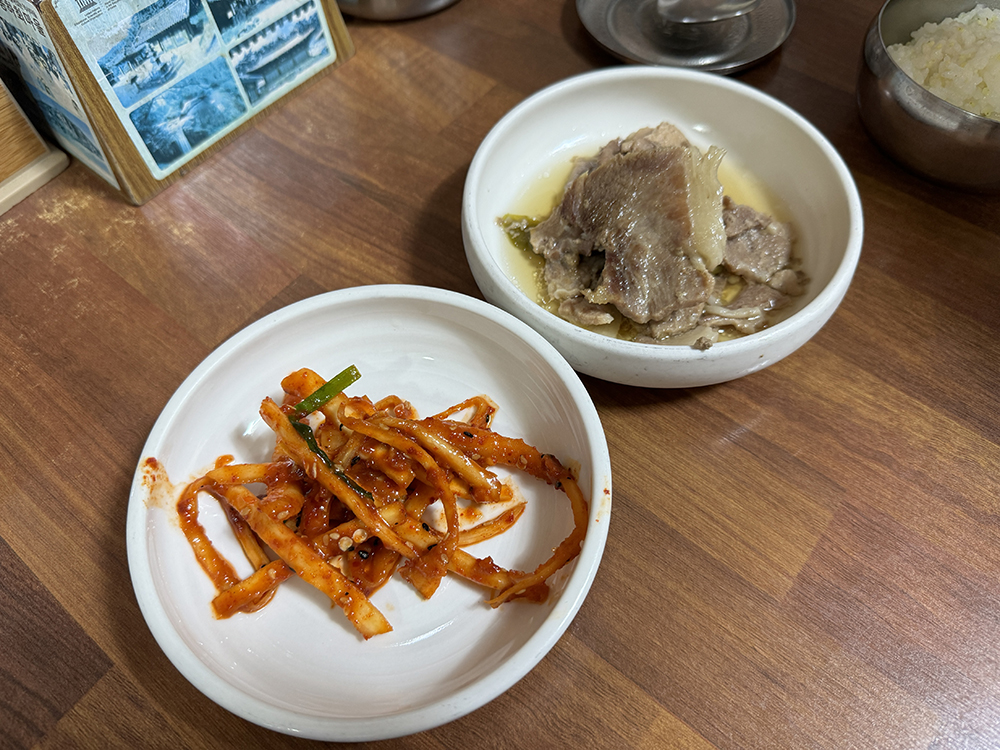 묵밥과 잔치국수의 기본 육수가 상당히 매콤했어요.