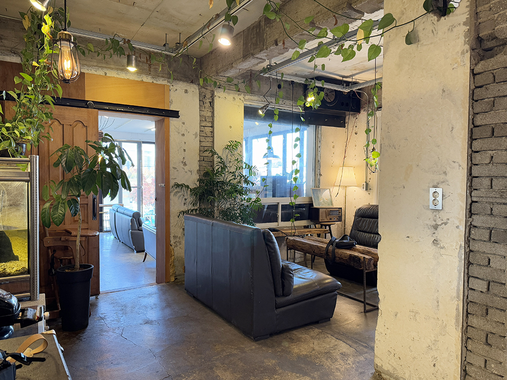 벽채로 적당히 나뉘어진 공간과 커다른 식물.