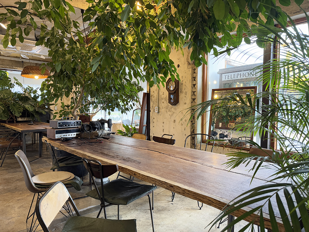 플랜테리어가 돋보이는 내부와 레트로 소품이 많아 편안한 분위기를 자랑하는 카페예요.