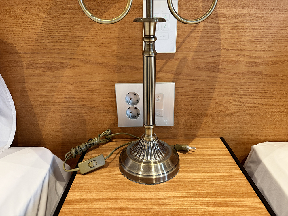 콘센트는 침대 옆과 벽면에 2곳 있어요.
