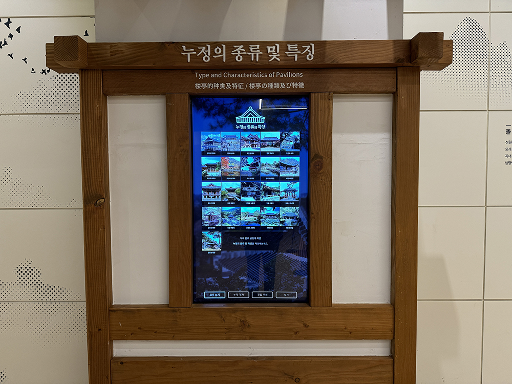 영상으로도 봤지만 전시관 내에서도 스크린을 통해 누정의 종류와 특징에 대해 한번 더 살펴볼 수 있습니다.