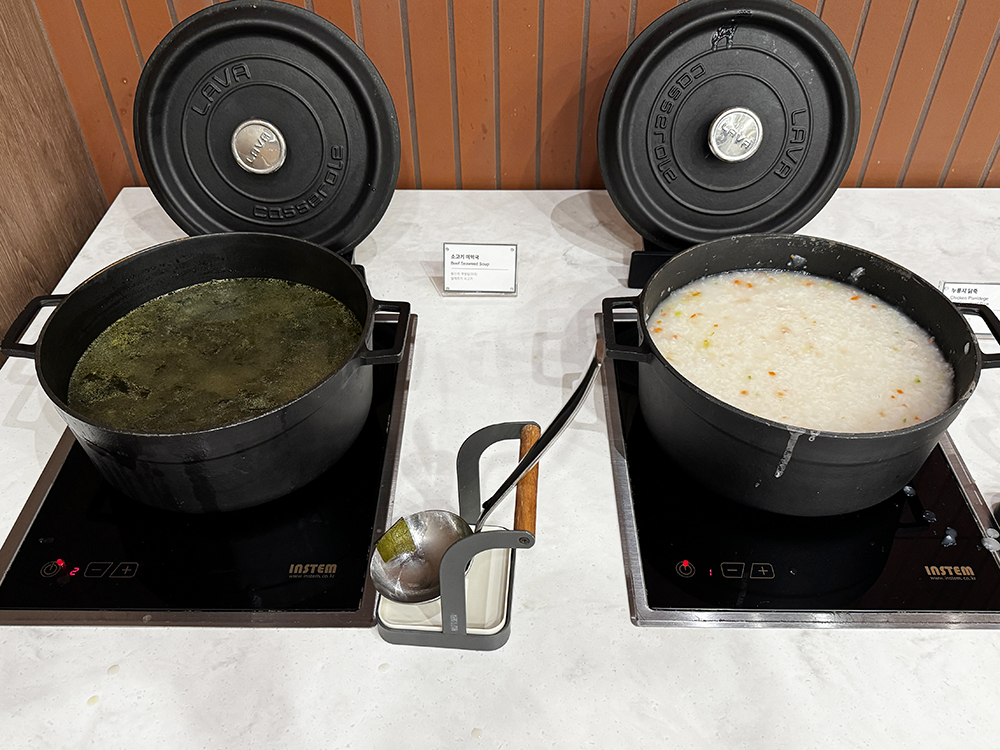 흰밥, 잡곡밥, 미역국, 죽, 크림스프 있어요.