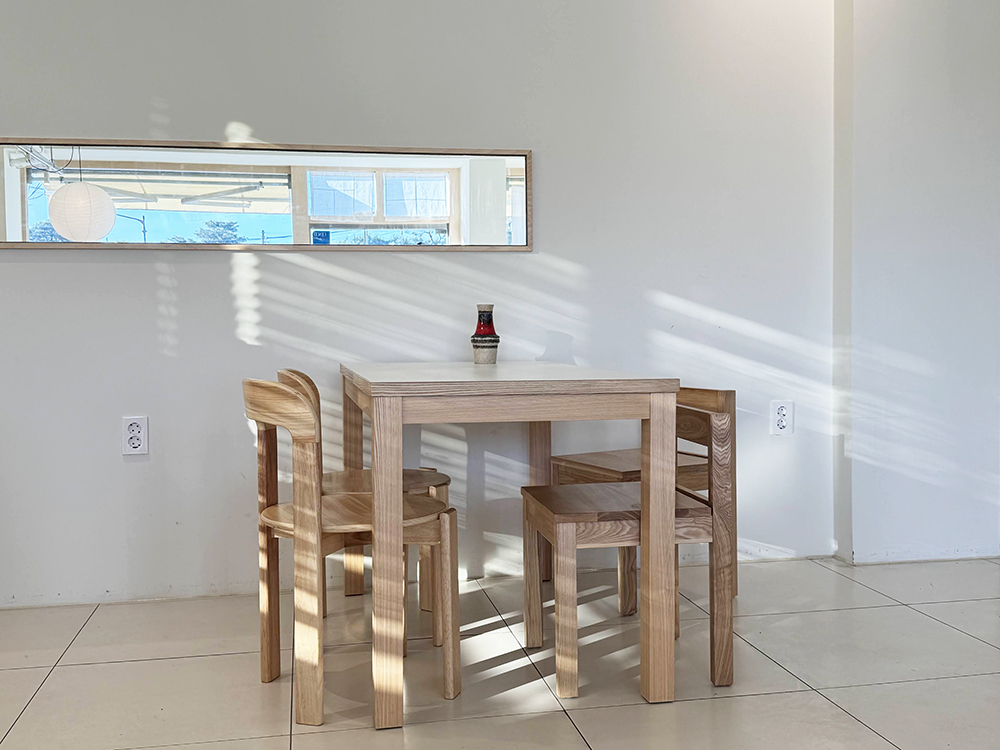 나무로 된 테이블과 의자는 편한한 느낌.