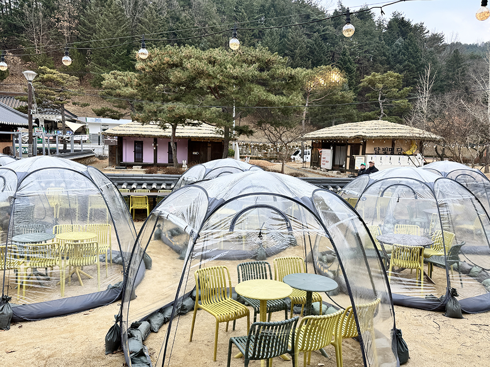 투명 쉘터에 빗방울이 떨어지는 소리를 들으면서 야외에 있어도 좋았겠다 싶더라고요.