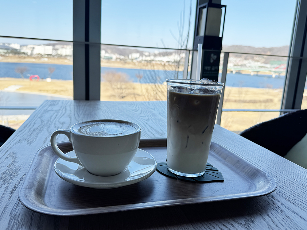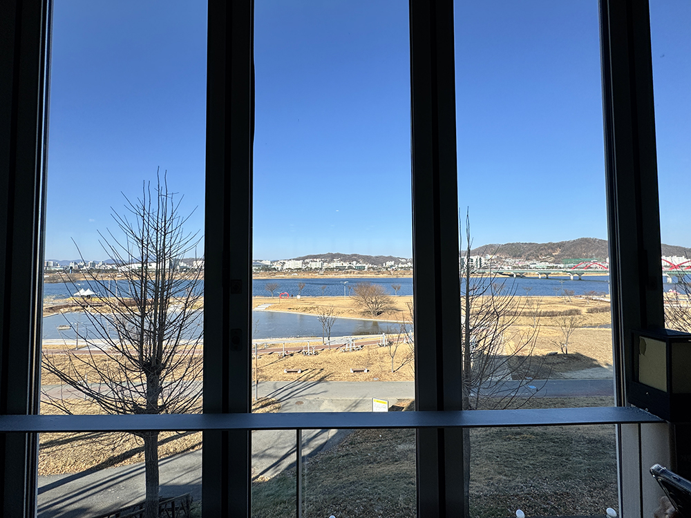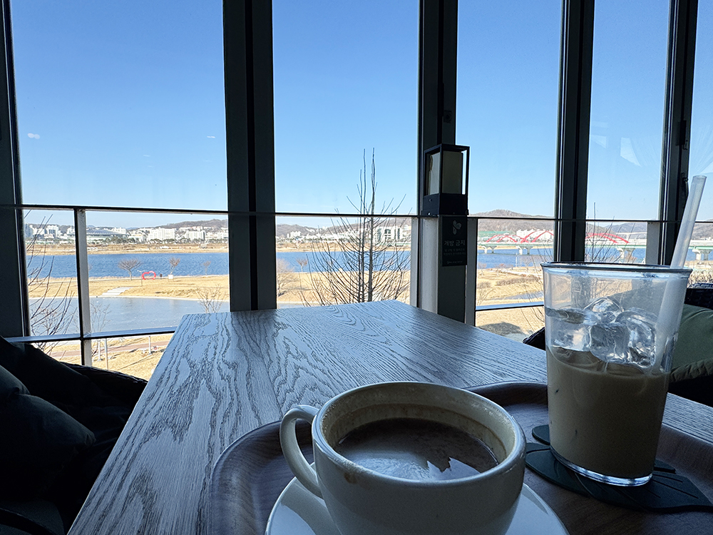 냉난방이 되므로 춥지도 덥지도 않고 음료를 마시며 강변을 보기 좋은 자리랍니다.