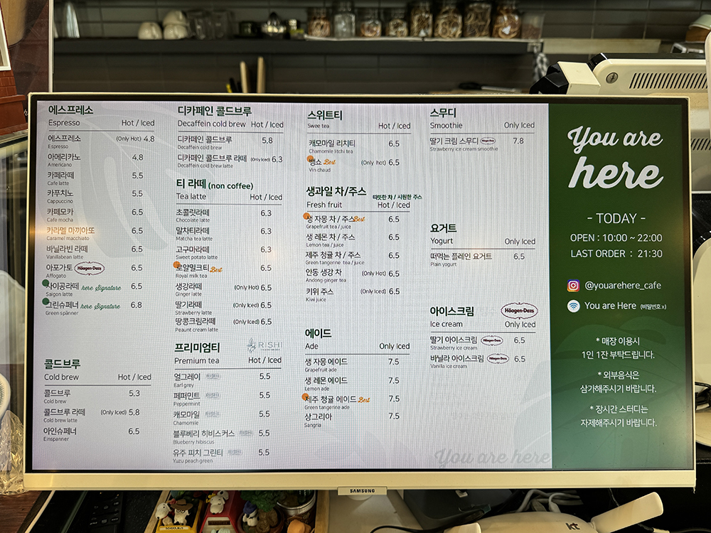 ❌휴무 : 별도 공지(네이버, 인스타그램 @youarehere_cafe)