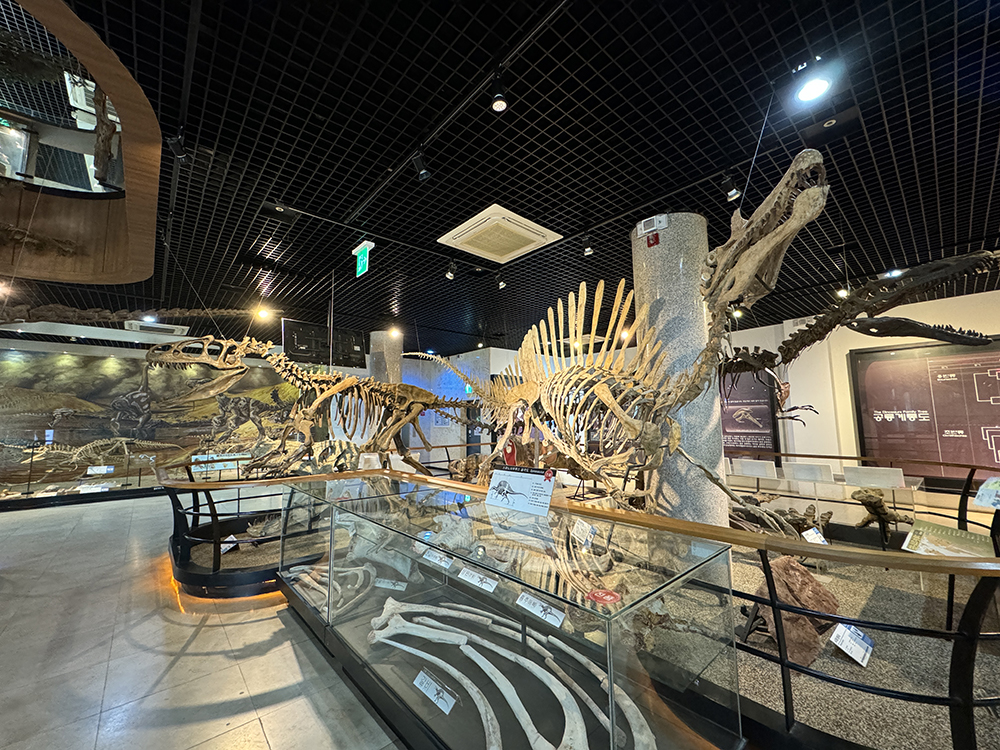 입구에 들어서자마자 압도적인 크기의 아파토사우루스와 스피노사우루스의 골격이 보입니다.