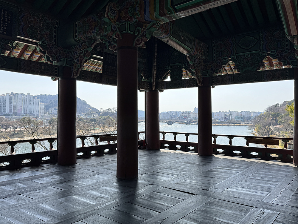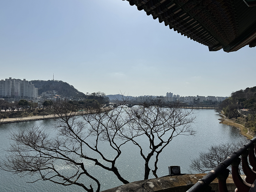 촉석루에 올라서면 남강이 한 눈에 내려다 보입니다.