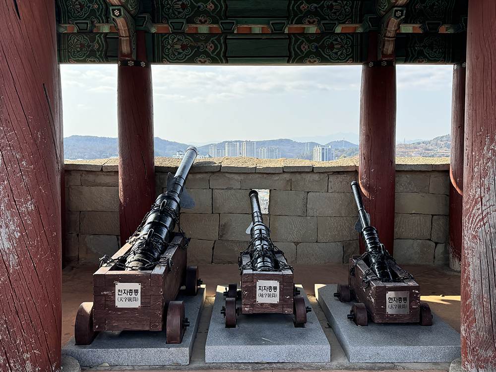 진주성을 돌아다녀보면 몇 군데에 총통이 전시된 것을 볼 수 있어요.