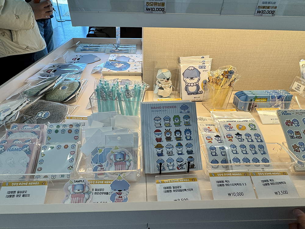 귀여운 하모 캐릭터 굿즈들을 구경하며 시원한 음료 한 잔으로 쉬어가기 딱 좋습니다.