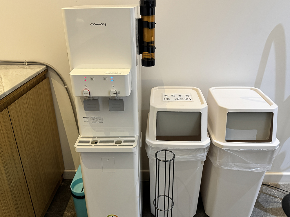커피머신과 정수기, 전자레인지가 있습니다.