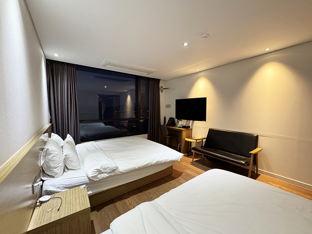 호텔이 남향으로 위치하고 있고, 바로 앞이 바닷가라서 전객실 오션뷰입니다.