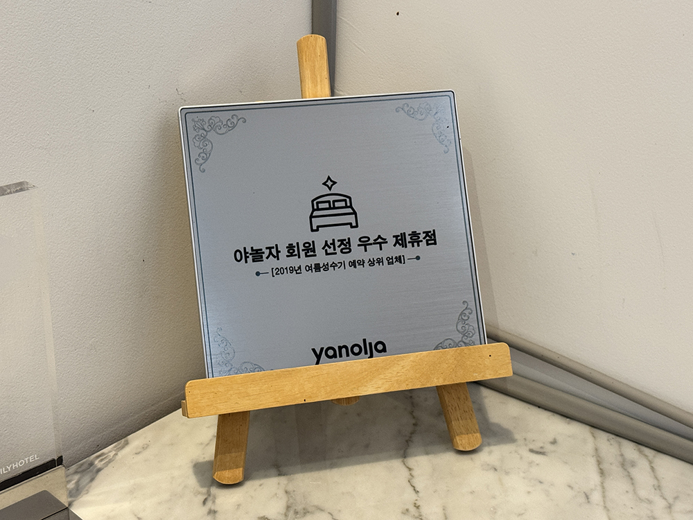 야놀자 회원 선정 우수 제휴점 팻말이 보이네요.